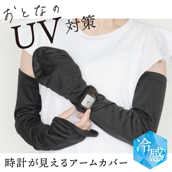 【UVカット】冷感 アームカバー ショート 無地 UPF50+ 紫外線カット 99% 細見え 薄手 手首 接触冷感加工 手の甲 きちんとガード 黒 グレー ブラック カラー