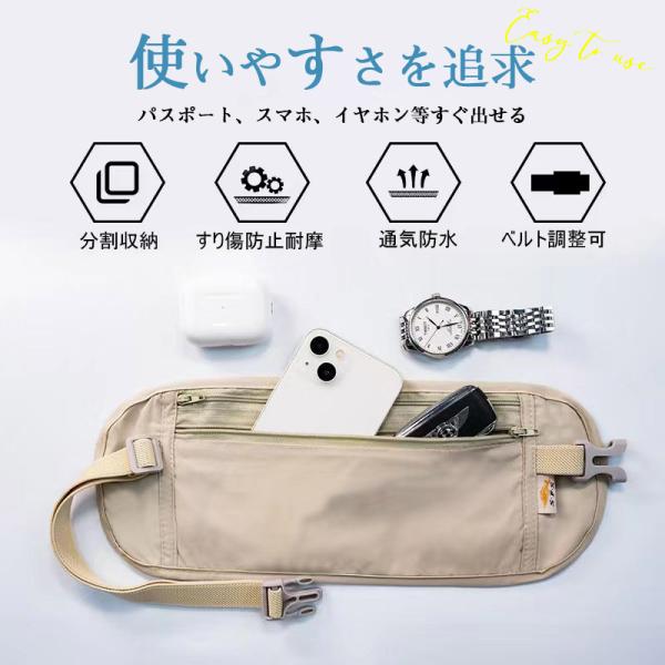 【隠せる薄型】防犯に特化した隠して装着できる超薄型タイプです。薄型のウエストポーチは服の下に装着しても、周りの人から見えず安心です。無防備にバッグ、ズボンのポケットに貴重品を入れず、隠されます。