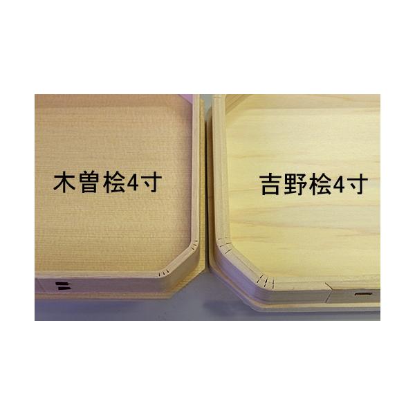 宮忠で扱っている三方の材種は、木曽桧、吉野桧の2種類あります。伊勢神宮で使われている木曽桧と同様の材木です。