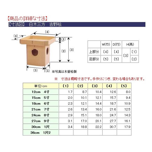 神棚 お供え 吉野桧 三方 4寸 幅12.5cm 奥行12.5cm 高さ10.2cm