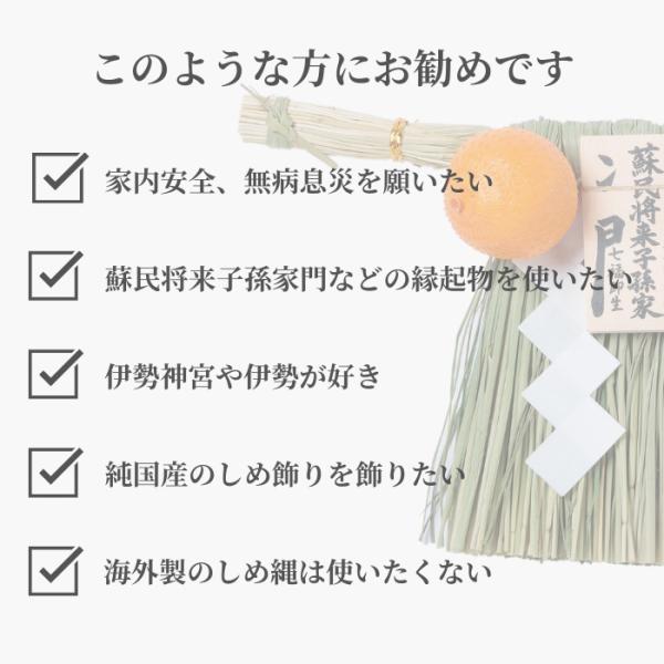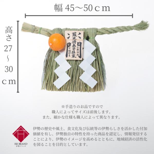 おなじみの玄関かざりです。サイズは 小寸・中寸・大寸・特大・特々大 の5種類です。 伊勢地方にまつわる「蘇民将来子孫家門」の木札です。こちら伊勢では、玄関注連縄を一年中かざっておくのが一般的です。