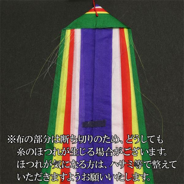 緑・黄・赤・白・青の五色絹の幟の先端に榊を立て、三種の神器を掛けたものです。