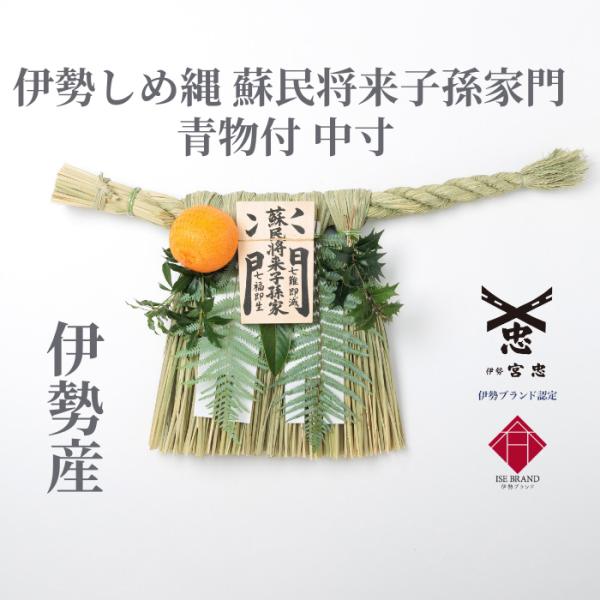 《数量限定販売》伊勢しめ縄(玄関用) 中寸 青物付 (蘇民将来子孫家門)