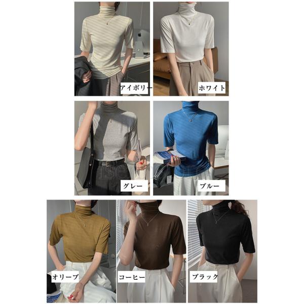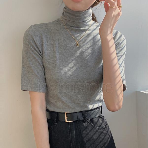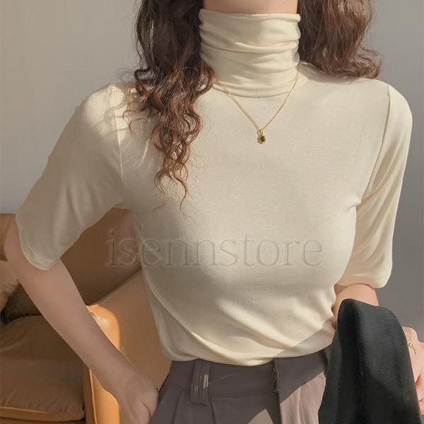 tシャツ レディース 春夏 半袖 タートルネック ハイネック 上品 無地 カットソー トップス uvカット 柔か インナー 伸縮性 薄手 5分袖 tシャツ シンプル コーデ