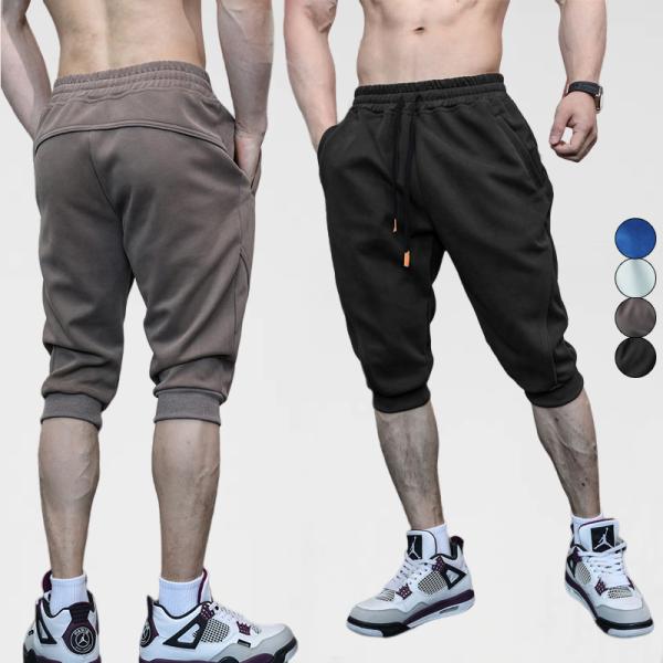 メンズ スウェットパンツ ジャージ 7分丈 無地 裾リブ ズボン ジョガーパンツ クロップドパンツ 無地 ウエストゴム 夏物 カジュアル イージーパンツ