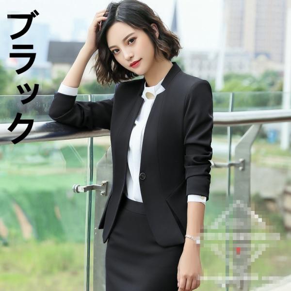 ノーカラージャケット レディース 春秋 トップス オフィス テーラード 長袖 フォーマル スーツコート OL通勤 アウター スリム 入学式・卒業式 セレモニー
