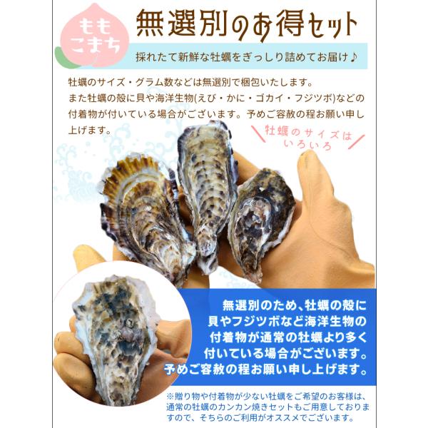 牡蠣 カンカン焼き セット 桃こまち サイズ 無選別 2kg(30個前後入り) ミニ缶入り 加熱用 (牡蛎ナイフ・片手用軍手付き) 殻付き牡蠣 海鮮