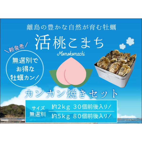 牡蠣 カンカン焼き セット 桃こまち サイズ 無選別 2kg(30個前後入り) ミニ缶入り 加熱用 (牡蛎ナイフ・片手用軍手付き) 殻付き牡蠣 海鮮