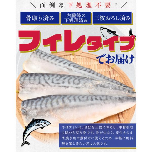 さば フィレ 骨なし 骨取り 無塩タイプ 2kg(1kg×2袋) 鯖 サバ 三枚おろし 大容量