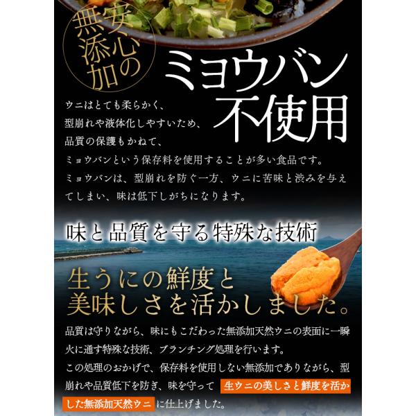 うに 特選品 うにの中でも状態の良いものを厳選し、鮮度保持のために手間暇をかけた特選品 ミョウバン不使用