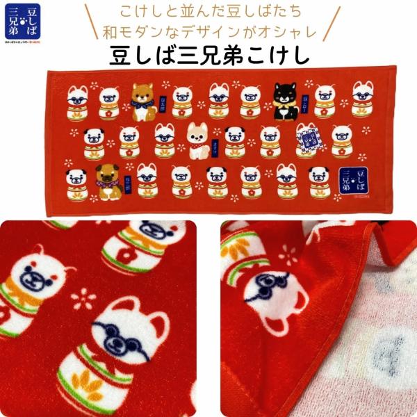 ふくふく シマエナガ 豆しば三兄弟 フェイスタオル 約34×80cn プリントタオル キャラクター かわいい 柄タオル シャーリング 吸水 保育園 幼稚園 入園準備