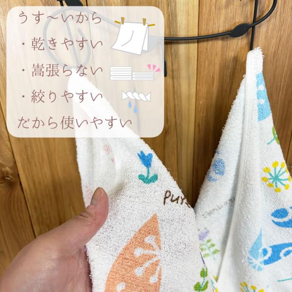 乾きやすいのでキッチンや、水回り用のタオルとしてもオススメです♪