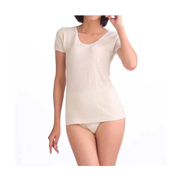 日本製シルク100%インナー 3分袖スリーマー シルクノイル つむいだシルクのやさしい肌着 レディース 婦人 半袖 冷え取り
