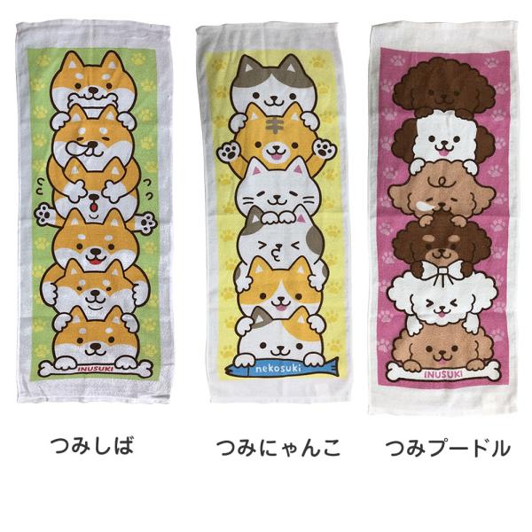 パイルプリントフェイスタオル 薄手フェイスタオル 約34×85cm つみシリーズ 綿100% 190匁 猫柄 つみ ねこ にゃんこ ネコ 柴犬