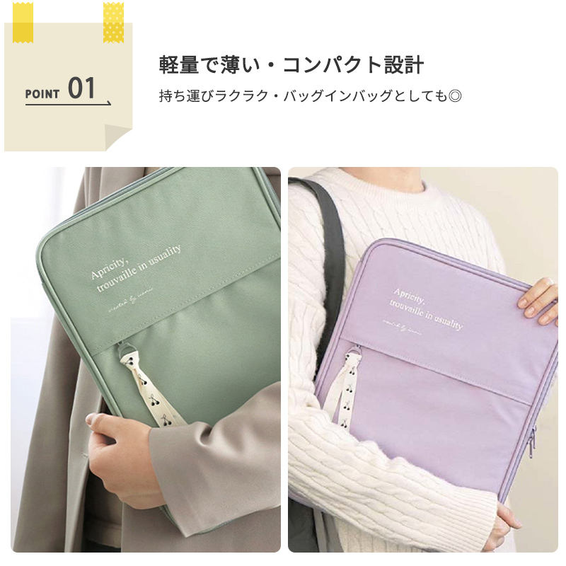学校 会社 通勤 通学 テレワーク PC周辺 コンパクト ポケット収納 ダブルファスナー 持ち運び便利 小物収納