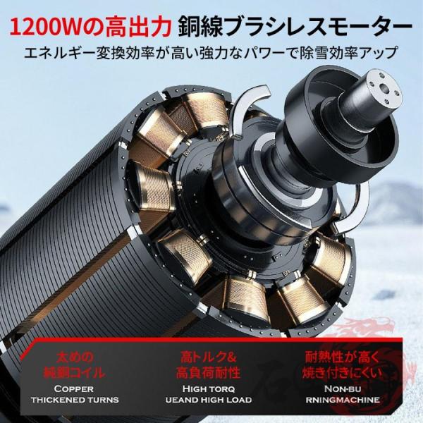 電動除雪機には15000の大容量バッテリーが搭載されています。高性能バッテリーにより、長時間の作業が可能で、一回の充電で最大30分間稼働します。