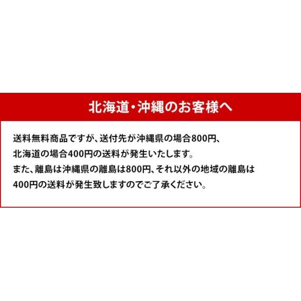 送料無料商品ですが、送付先が沖縄県の場合800円、北海道の場合400円の送料が発生いたします。また、離島は沖縄県の離島は800円、それ以外の地域の離島は400円の送料が発生致しますのでご了承ください。