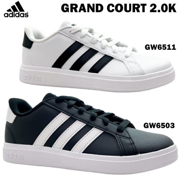 アディダス グランドコート 2.0 K GW6503 GW6511 22.0~24.5cm ジュニア スニーカー adidas シューズ 子供 キッズ コートタイプ クッション 白 黒 学校 送料無料