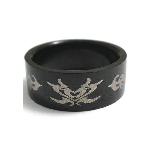 ブラック ステンレス リング ハート風(メール便送料無料)