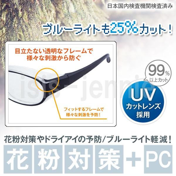 目立たない透明なフレームで様々な刺激から目を守る。花粉症対策、ブルーライト25%カットのPCメガネ、UVカット99%以上の紫外線対策など、あなたの目を守ります。男女兼用のフリーサイズ商品カラーはブラック・ブラウンからお選び頂けます。■商品仕様■重量:約25g(本体)材質:プラスチック