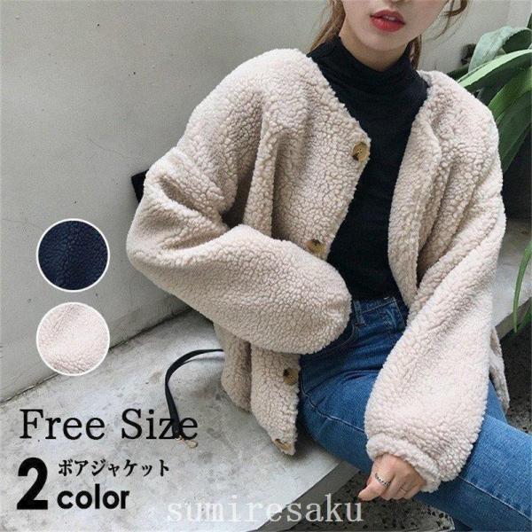 ボアブルゾンボアジャケットボアコートアウターフリースコートボアジャケットブルゾンもこもこ防寒ノーカラーレディースカジュアルゆったり