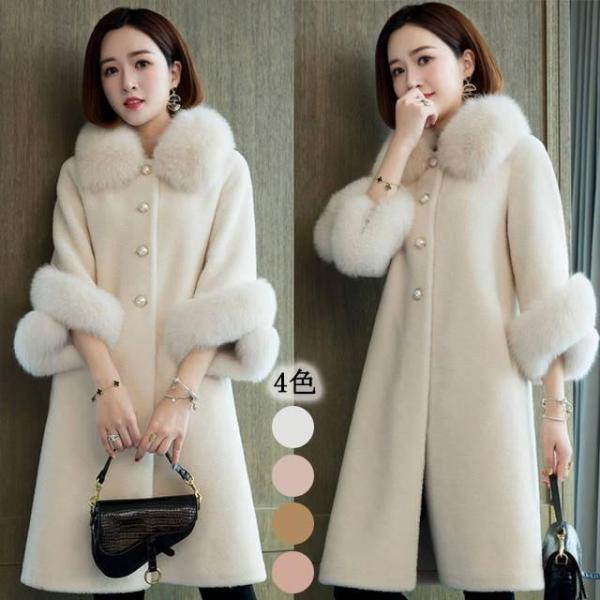 ロング ファーコート ホワイト フォーマル 結婚式 毛皮コート レディース 大きいサイズ 7分袖 フェイクファー お洒落 エレガント 二次会 お呼ばれ