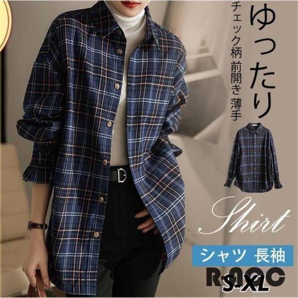 シャツ レディース 長袖 ブラウス ロング丈 ス チェック柄 前開き 薄手 ゆったり シンプル カジュアル 春秋 おしゃれ ルームウエア 大人