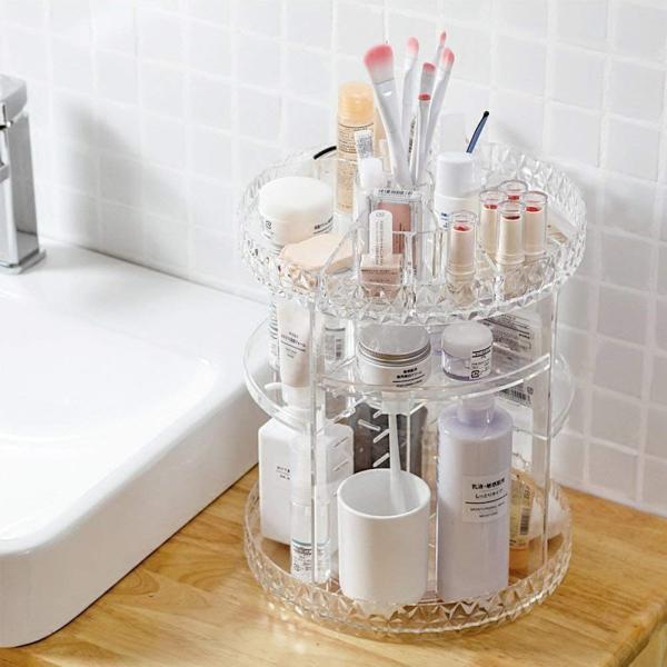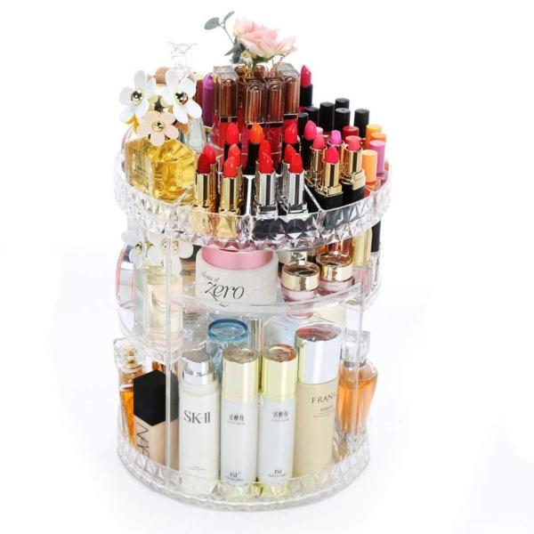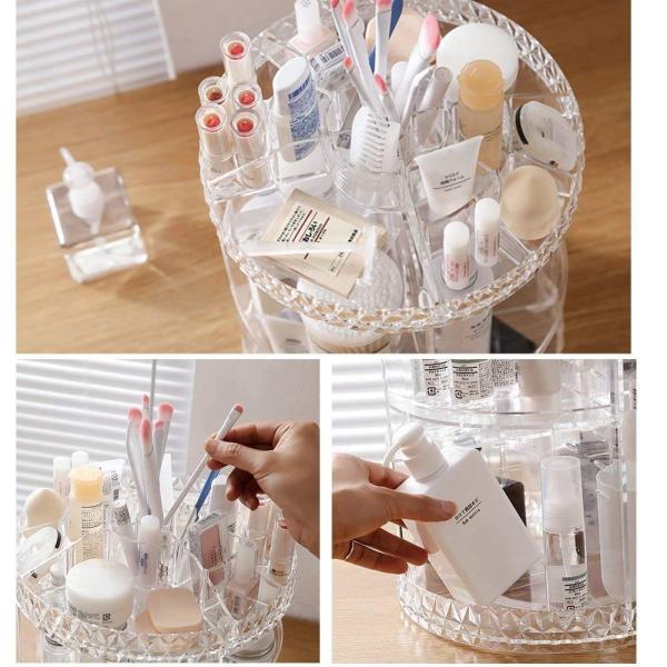 コスメボックス タワー型メイクボックス 360度回転式 収納 卓上メイクボックス ケース 化粧品スタンド アクリル