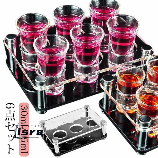6点セット ショットグラス サービングトレイ付き 30ml 15ml ショットグラスセット ホルダーセット テキーラウイスキー ドリンク ウィスキー