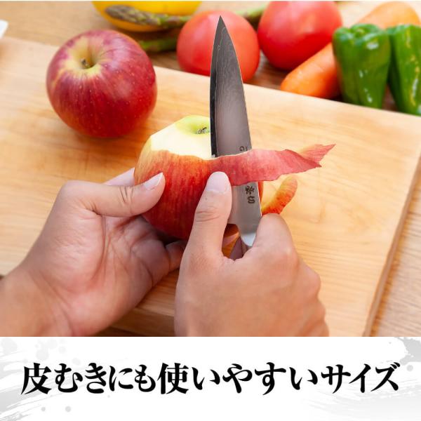 【基本仕様】刃渡り:125mm, 本体重量:85g, ペティナイフは小さく軽いので扱いが簡単。ちょっとした調理や果物の皮むき、飾り切りなどにも使える小型の万能包丁です。