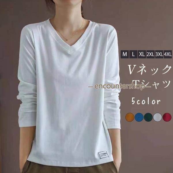 Tシャツ レディース 長袖 カットソー インナー Vネック ゆったり ス 無地 着心地いい シンプル 大きいサイズ 着痩せ 春秋 おしゃれ 通勤
