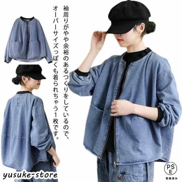 ノーカラーデニムジャケット レディース ゆったり アウター ノーカラー ジャケット ジップアップ ショート丈 長袖 ブルゾン ジージャン 大きいサイズ