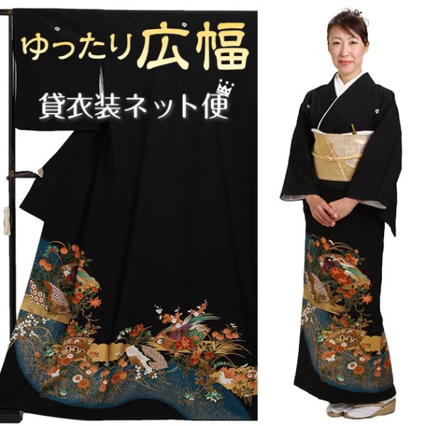 留袖レンタル 大きいサイズ 留袖レンタル50代 黒留袖レンタル 正絹 広巾 着物レンタル 留袖 フルセット NT-L284 結婚式 母親 服装 50代 60代