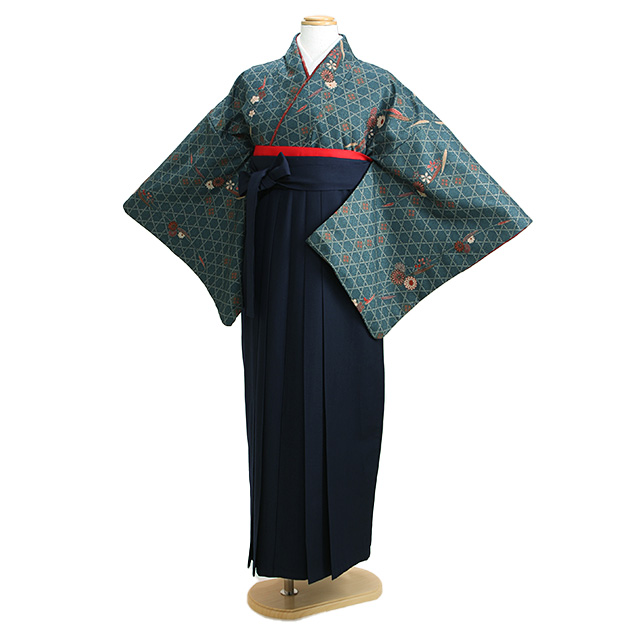 教員 卒業式 袴 レンタル 袴セット レディース 着物レンタル 深藍色 ブルー 小紋 NT-97