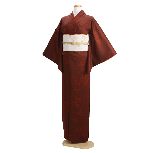 小紋 レンタル 袷 10月〜5月向け 正絹 茶色 着物レンタル お稽古 観劇 送料無料 NT-64