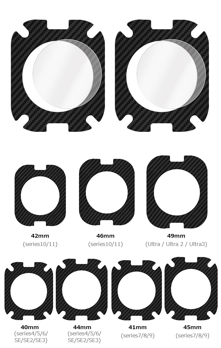 バックフィルム+センサー保護フィルム カーボン調 アップルウォッチ 11 / 10 / 9 / 8 / 7 / 6 / 5 / 4 / Ultra / Ultra 2 / Ultra 3 / SE / SE 2 / SE 3 スキンシール appleウォッチ