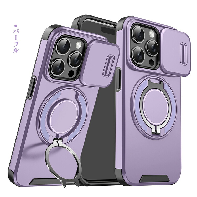 iPhone16 ケース 耐衝撃 カバー スライド式カメラレンズカバー付き レンズ保護 一体型リング付き iPhone 16 Plus/16 Pro/16 Pro Max