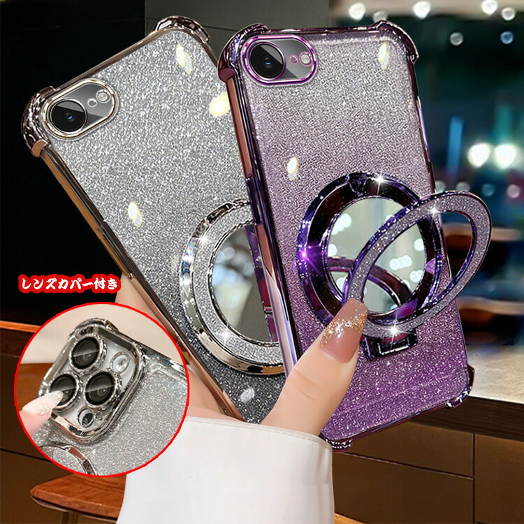 一体型カメラレンズ保護 メイクに便利な化粧鏡付き 片手持ちに便利なリング付き 角 保護 コーナーバンパー アップル アイフォン 16e 衝撃吸収 お洒落 おすすめ アイホン アイフォーン