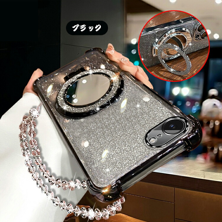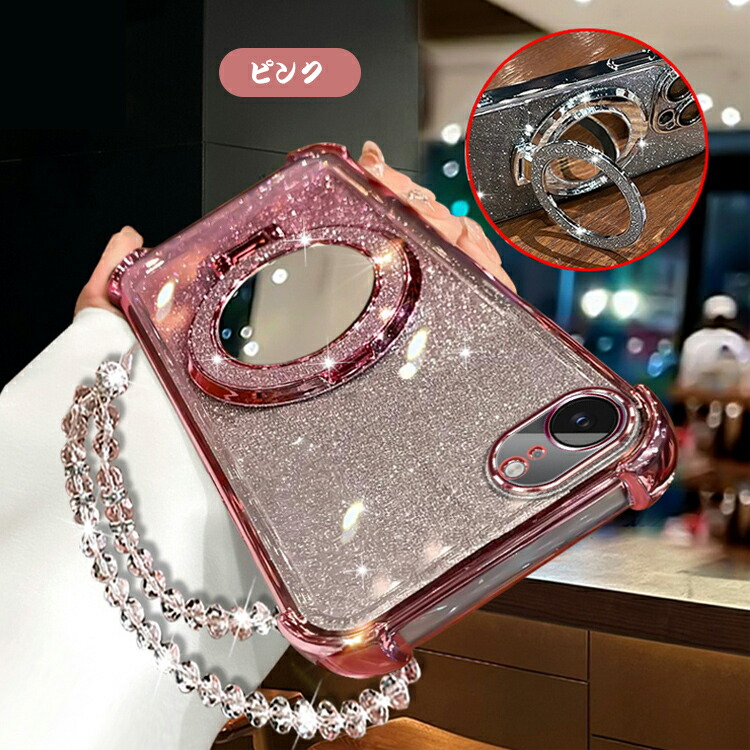 iPhone16e ケース レンズカバー付き カバー ストラップ付き クリア 透明 TPU ソフトケース ミラー付き 分離型スマホリング付き スタンド機能 ストラップ穴