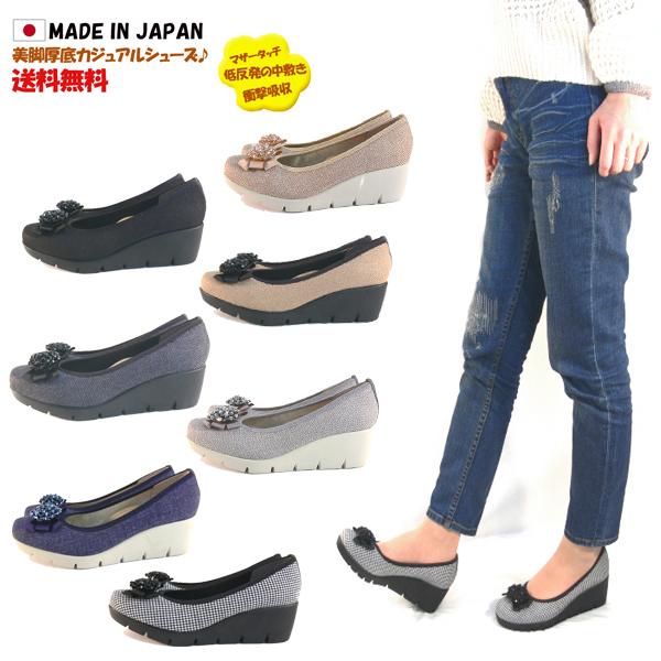 厚底パンプス レディース 日本製 痛くない 母の日 ウェッジパンプス コンフォートシューズ 走れるパンプス 美脚 通勤 楽な履き心地 低反発 衝撃吸収