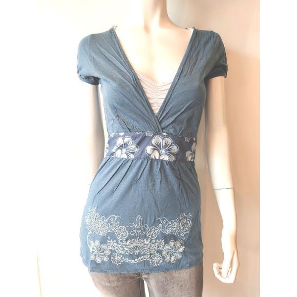 在庫処分品 FREESOUL フリーソウル 重ね着風 ウエストリボン 半袖カットソー レディース (ブルー)