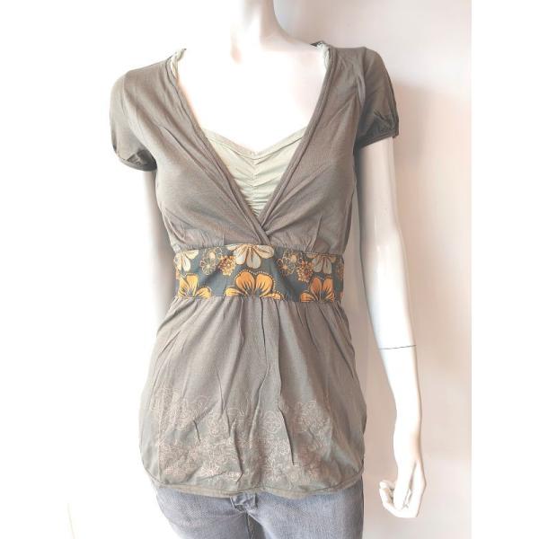 在庫処分品 FREESOUL フリーソウル 重ね着風 ウエストリボン 半袖カットソー レディース (カーキ)