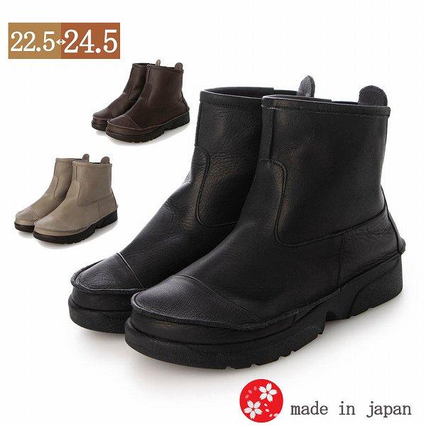 本革 日本製 レディース ソフトレザー 軽量 カジュアルブーツ ミドルブーツ サイドゴア (3色)