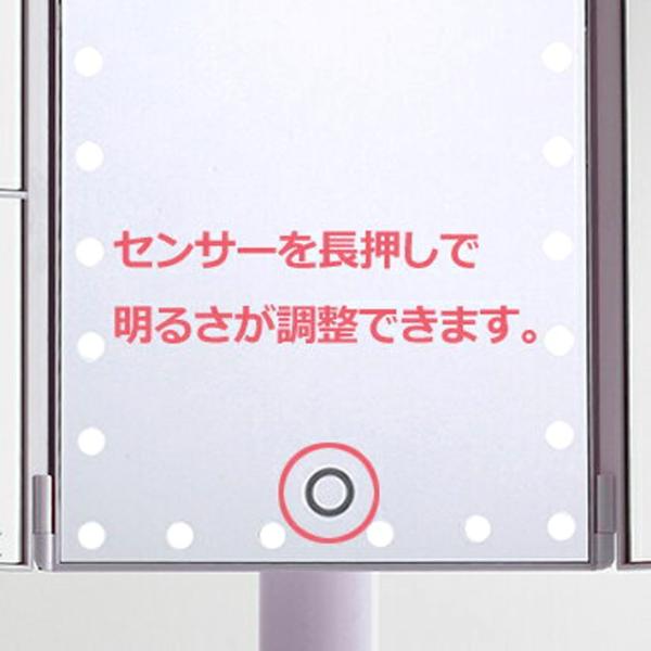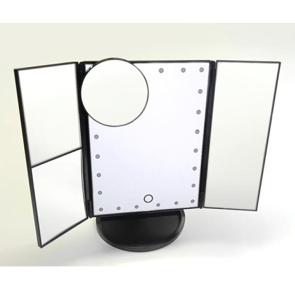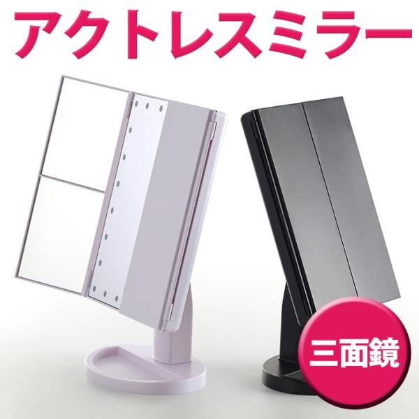 女優鏡 女優ミラー 三面鏡 卓上 24LEDライト KW034B 2倍 3倍 10倍鏡 スタンド 自立 鏡 化粧 メイク メイクアップ USBケーブル付 アクトレスミラー 送料無料 爆買