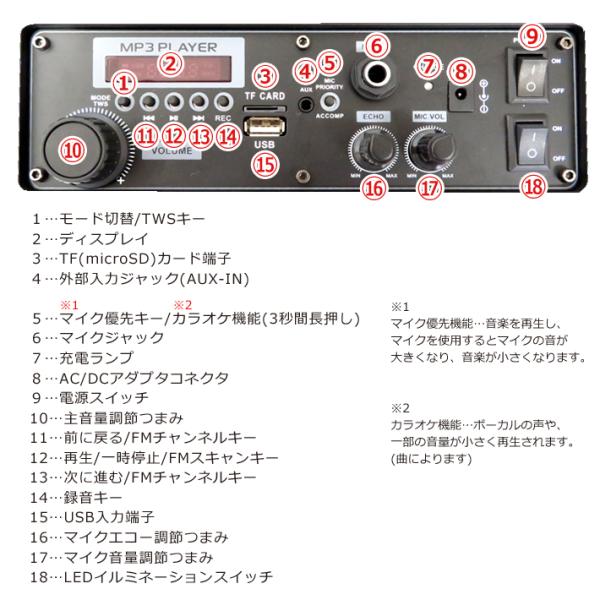 ※同じ周波数のワイヤレスマイク2本での同時使用はできません。