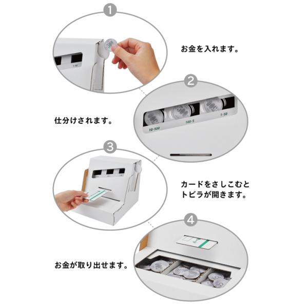 ●お金を入れると自動的に仕分けされ、カードをさすとお金が取り出せます。