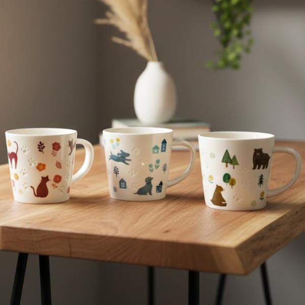 肉球マグカップ+茶筒缶セット ほたる手 蛍手 蛍彫り 透かし 肉球 動物 犬 猫 熊 クマ イヌ ネコ かわいい 食器 300ml ギフト プレゼント 送料無料 爆買
