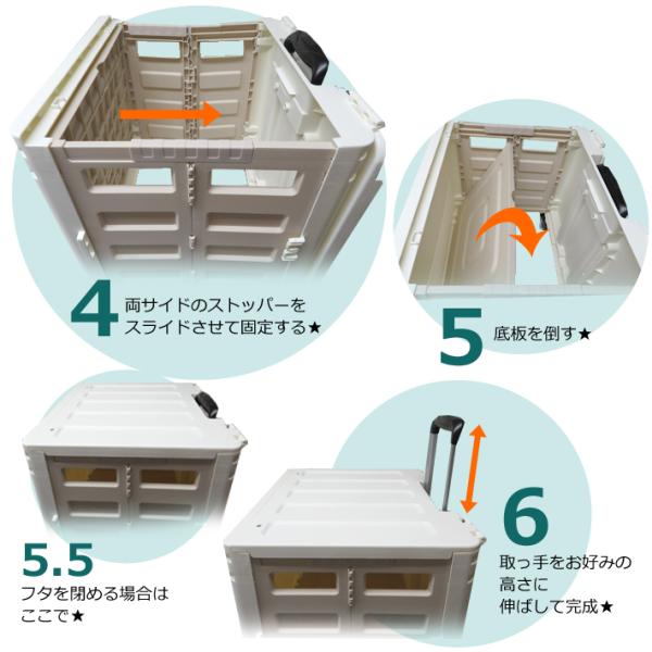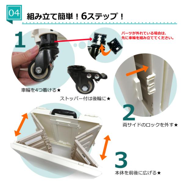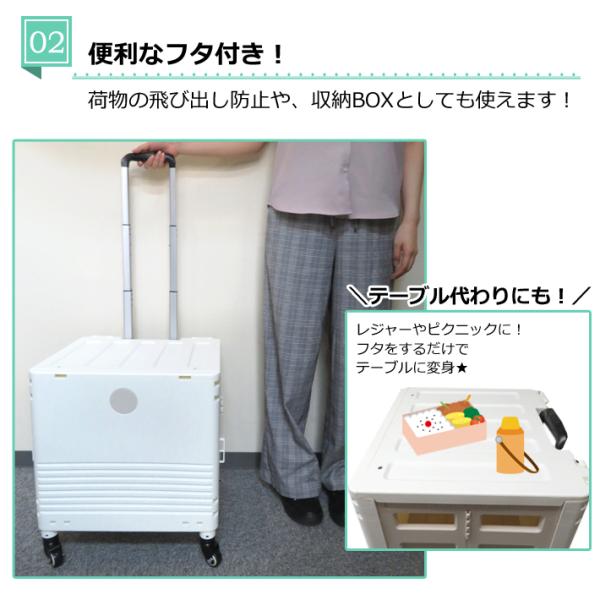 折りたたみ式 キャリーカート Lサイズ 4輪 フタ付き キャリーコンテナ 折り畳み式 K-247 ブラック ホワイト 黒 白 買い物 耐荷重60kg 送料無料 爆買