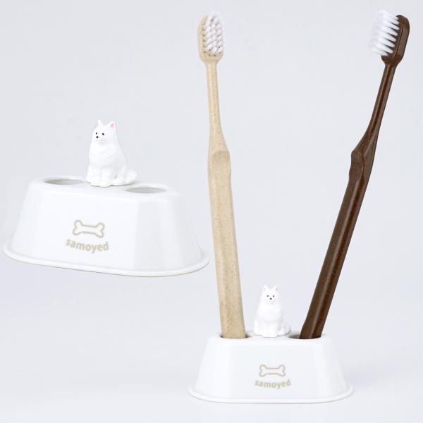 単品 サモエド 歯ブラシスタンド 可愛い 誕生日 プレゼント ギフト 2本立てれる 歯ブラシ立て 犬 アニマル 動物 送料無料 爆買