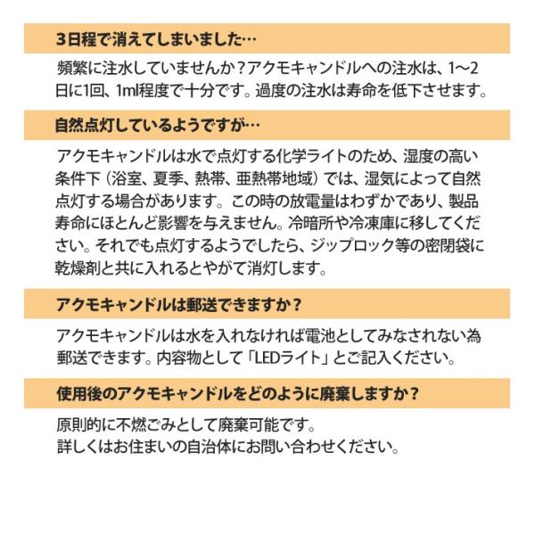 ●まさかの時のために、お手元にアクモキャンドルを常備することをお勧めします。